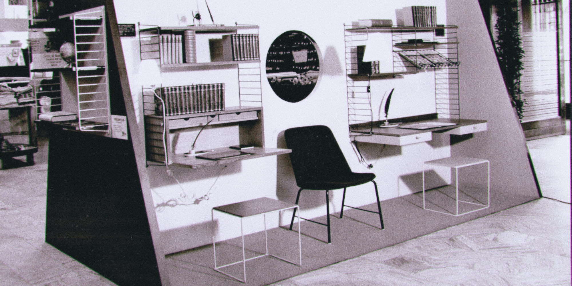스트링 퍼니처 시스템은 1949년 스웨덴에서 건축가였던 닐스 스트링(Nils Strinning) 과 디자이너 카지사 스트링(Kajsa Strinning) 부부에 의해 개발되었습니다. 당시 스웨덴 서점연합이 개최한 ‘모두가 조립할 수 있는 책장 시스템’ 공모전에서 우승하면서 상업적으로 도입되었으며, 모듈식 가구의 새로운 기준을 제시했습니다.